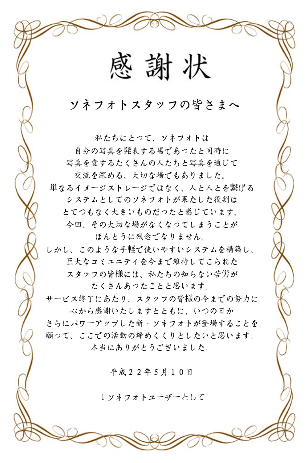 ソネフォト→ソネブロへの移行・ソネフォトは5月10日で無くなってしまいますが、自分がアップした画像とみんなのコメントをソネブロ(ソネットブログ)に移して残しておくことができます。登録は無料なので、使うか使わないか分からないけれど完全になくなっちゃうのはちょっと寂しいな、と思ったら移行しておくとよいかもしれません。